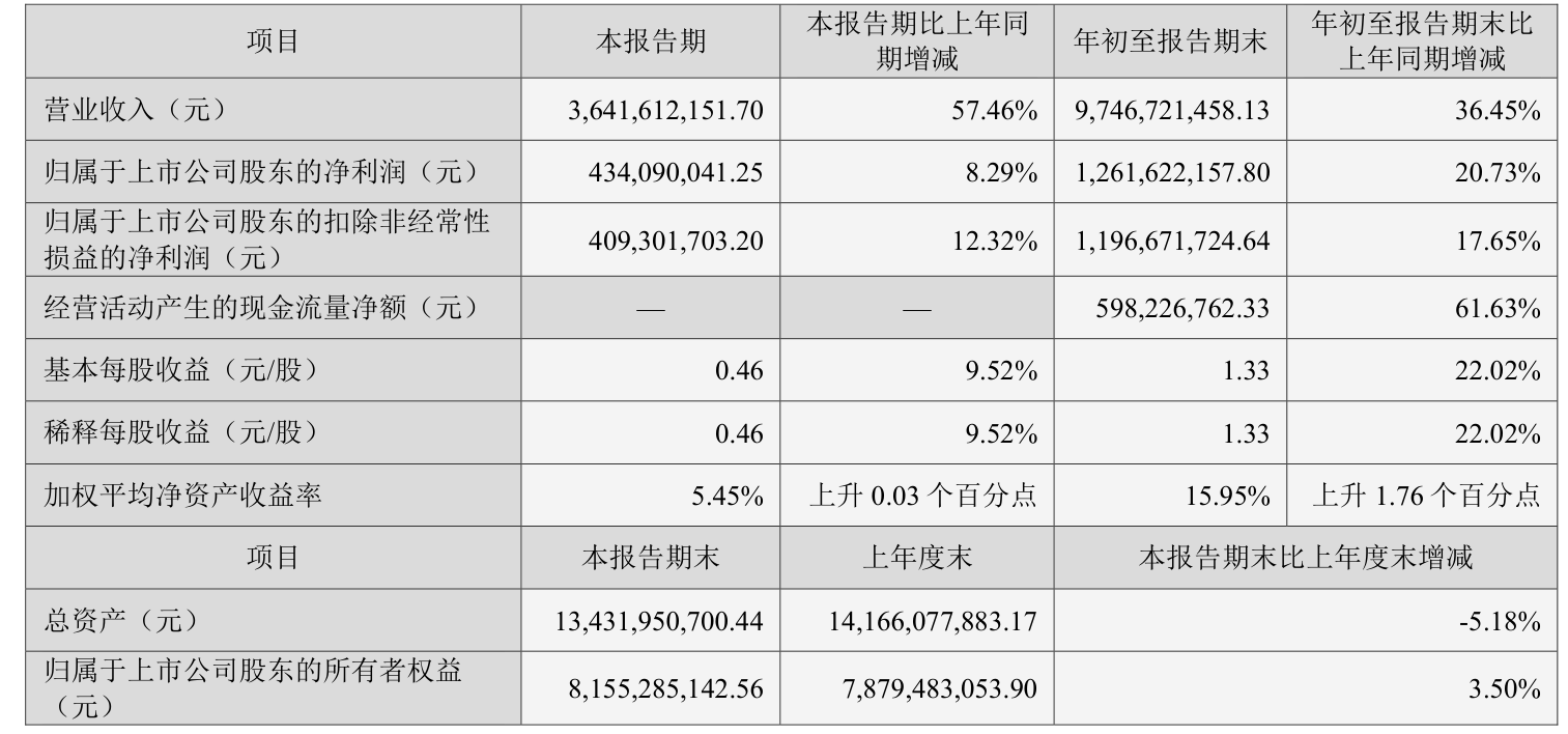 盈利能力方面, 2025年前三季度公司加权平均净资产收益率为15.95%,同比上升1.76个百分点。公司2025年前三季度投入资本回报率为13.92%,较上年同期上升1.88个百分点。