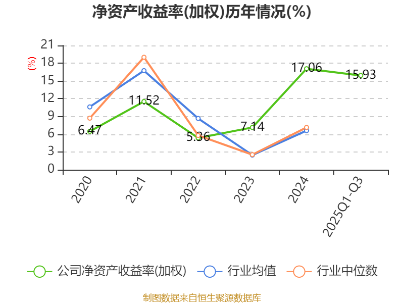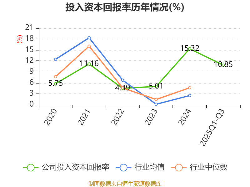 盈利能力方面, 2025年前三季度公司加权平均净资产收益率为15.93%,同比上升3.02个百分点。公司2025年前三季度投入资本回报率为10.85%,较上年同期下降0.74个百分点。