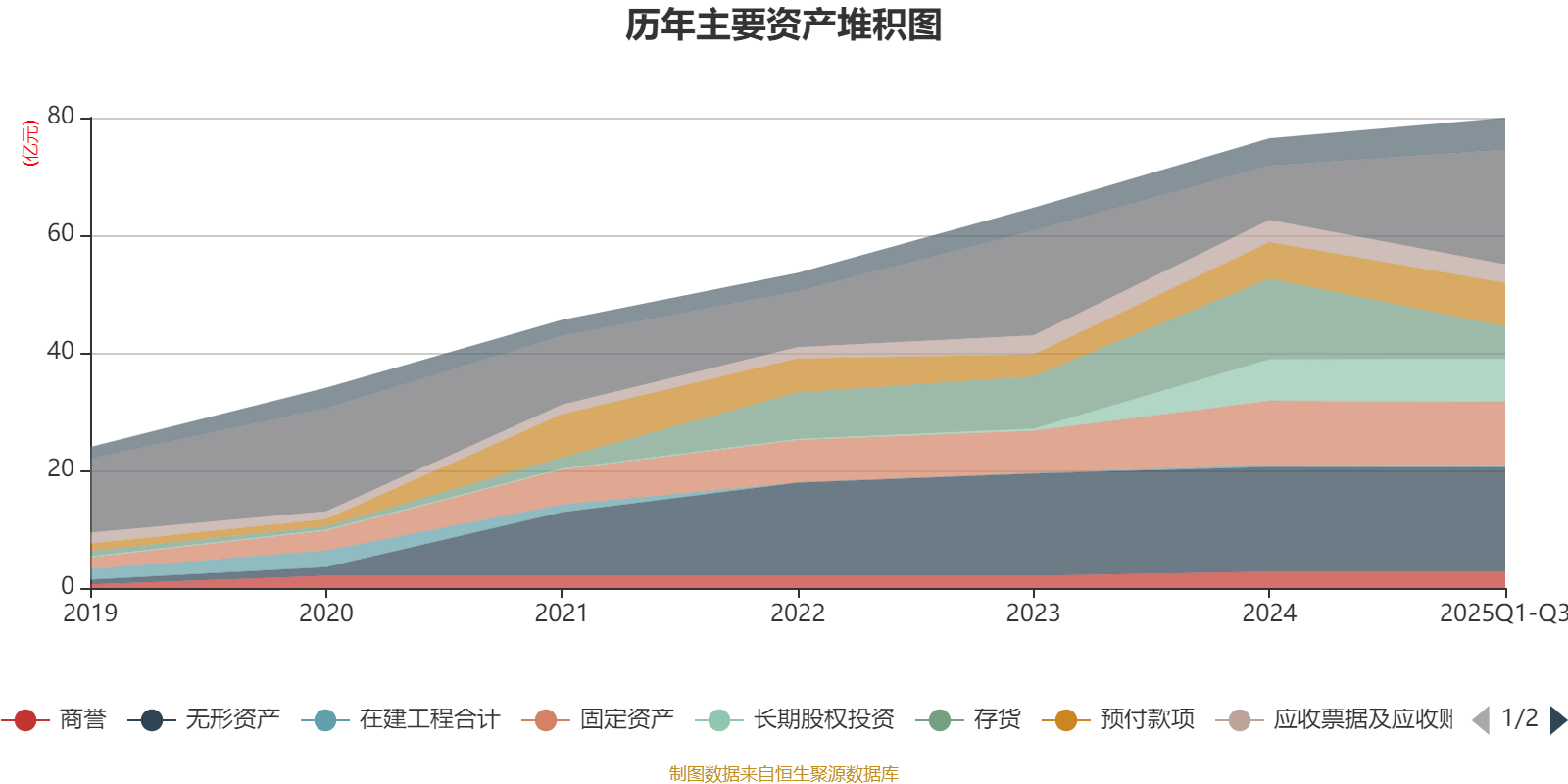 资产重大变化方面,截至2025年三季度末,公司货币资金较上年末增加111.12%,占公司总资产比重上升12.33个百分点;存货较上年末减少59.86%,占公司总资产比重下降11.08个百分点;无形资产较上年末减少0.54%,占公司总资产比重下降1.15个百分点;预付款项较上年末增加18.6%,占公司总资产比重上升1.09个百分点。