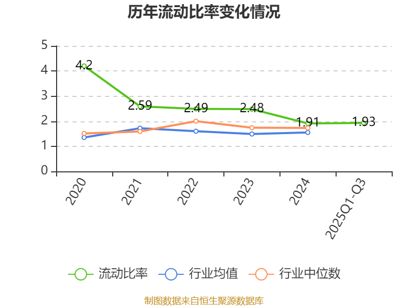 2025年前三季度,公司流动比率为1.93,速动比率为1.65。