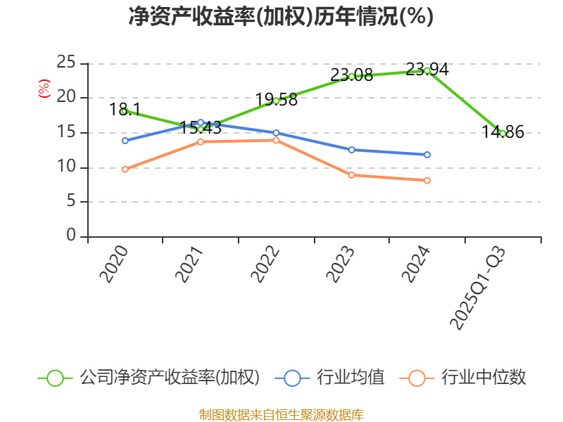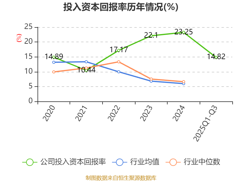 盈利能力方面, 2025年前三季度公司加权平均净资产收益率为14.86%,同比下降5.68个百分点。公司2025年前三季度投入资本回报率为14.82%,较上年同期下降5.06个百分点。