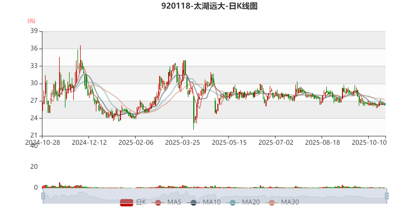 以10月27日收盘价计算,太湖远大目前市盈率(TTM)约为29.18倍,市净率(LF)约2.38倍,市销率(TTM)约0.84倍。