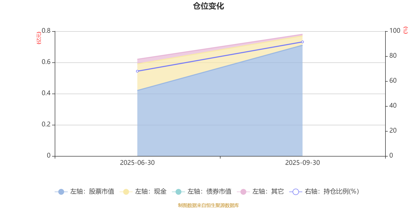 据定期报告数据统计,成立以来平均股票仓位为79.69%,同类平均为87%。2025年三季度末基金达到91.43%的最高仓位,2025年上半年末最低,为67.95%。