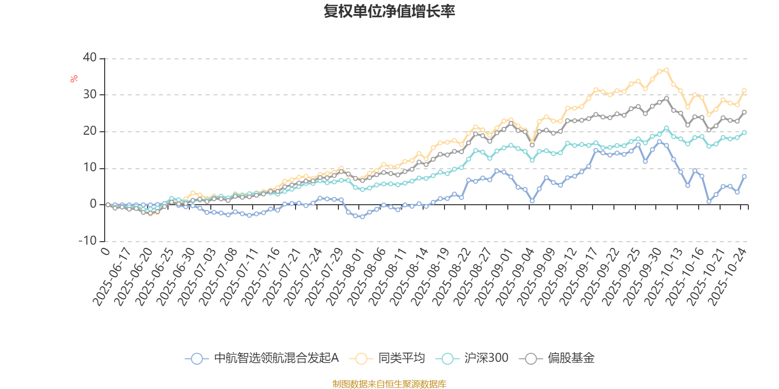 截至10月24日,中航智选领航混合发起A近三个月复权单位净值增长率为5.82%,位于同类可比基金87/100。