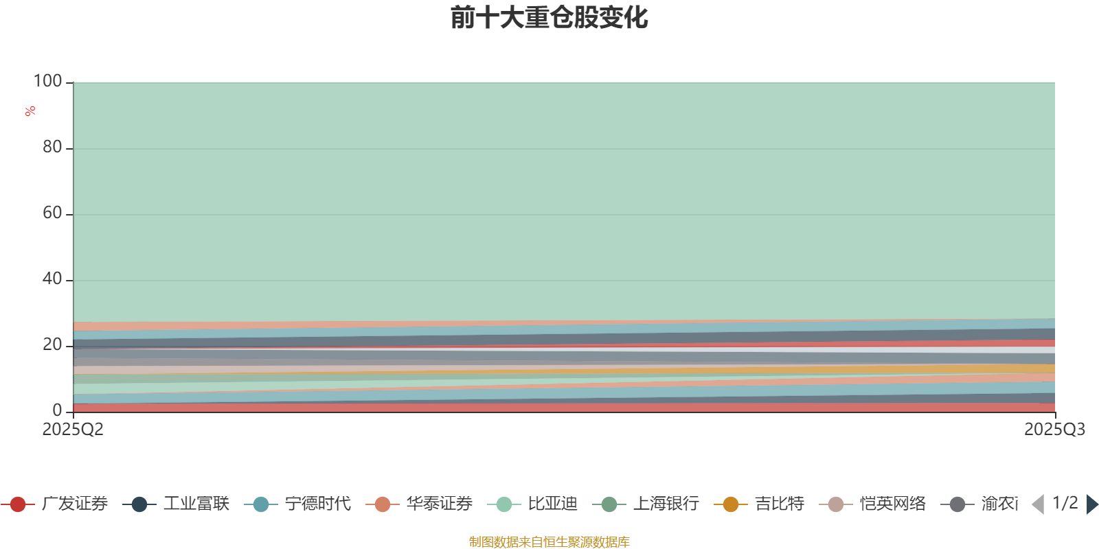 截至2025年三季度末,基金十大重仓股分别是宁德时代、药明康德、华友钴业、工业富联、胜宏科技、吉比特、华泰证券、广发证券、江苏银行、云南白药。