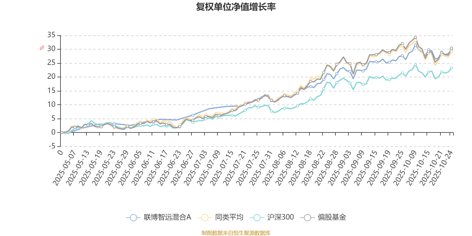 截至10月24日,联博智远混合A近三个月复权单位净值增长率为18.39%,位于同类可比基金212/621。