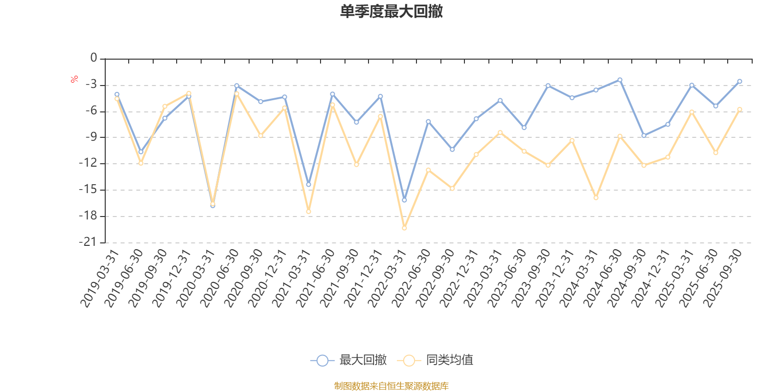 截至10月24日,基金近三年最大回撤为8.77%,同类可比基金排名0/365。单季度最大回撤出现在2020年一季度,为16.78%。