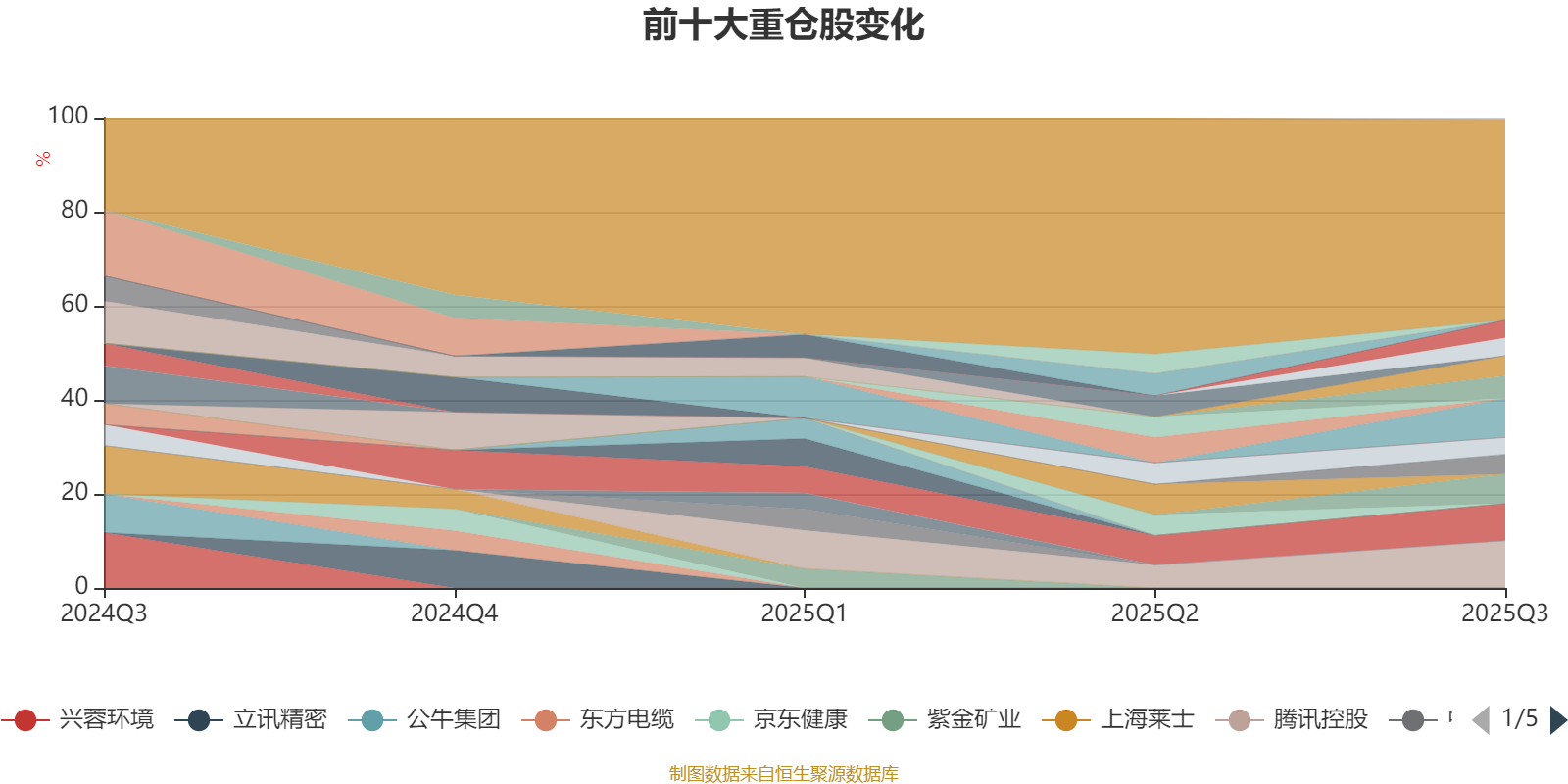 截至2025年三季度末,基金十大重仓股分别是腾讯控股、阿里巴巴-W、宁德时代、汇川技术、亿纬锂能、科达制造、徐工机械、华新水泥、华通线缆、伊利股份。