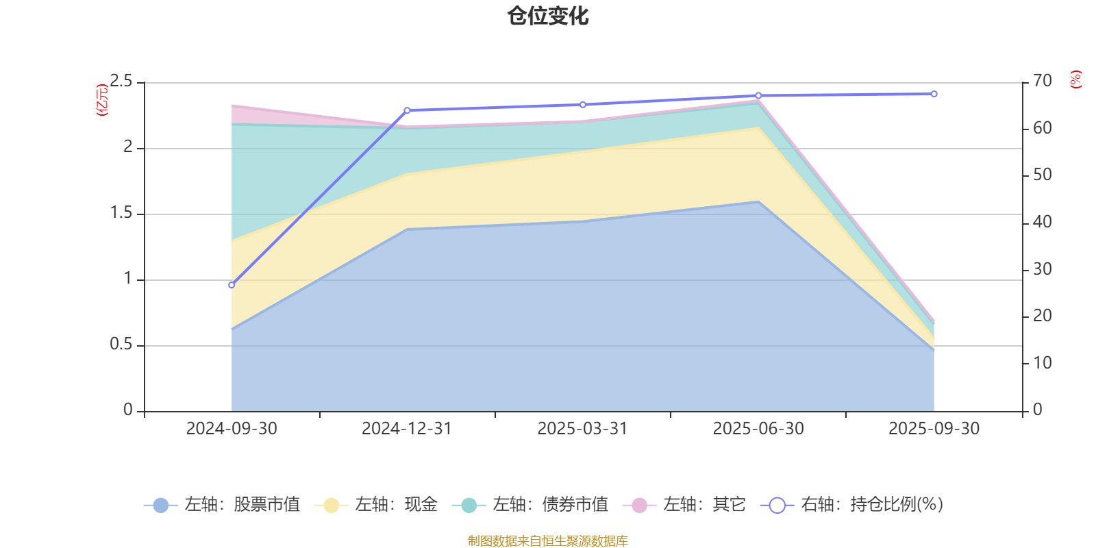 据定期报告数据统计,成立以来平均股票仓位为58.14%,同类平均为85.51%。2025年三季度末基金达到67.51%的最高仓位,2024年三季度末最低,为26.83%。