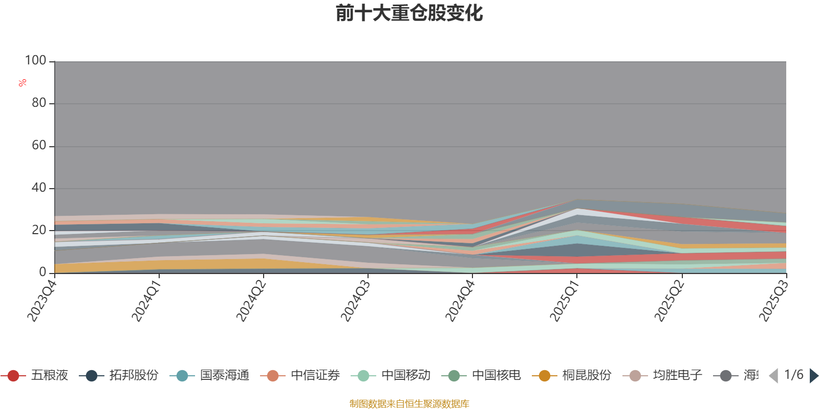 截至2025年三季度末,基金十大重仓股分别是招商银行、中国平安、美的集团、兴业银行、中信证券、吉林敖东、中国核电、国泰海通、格力电器、龙佰集团。