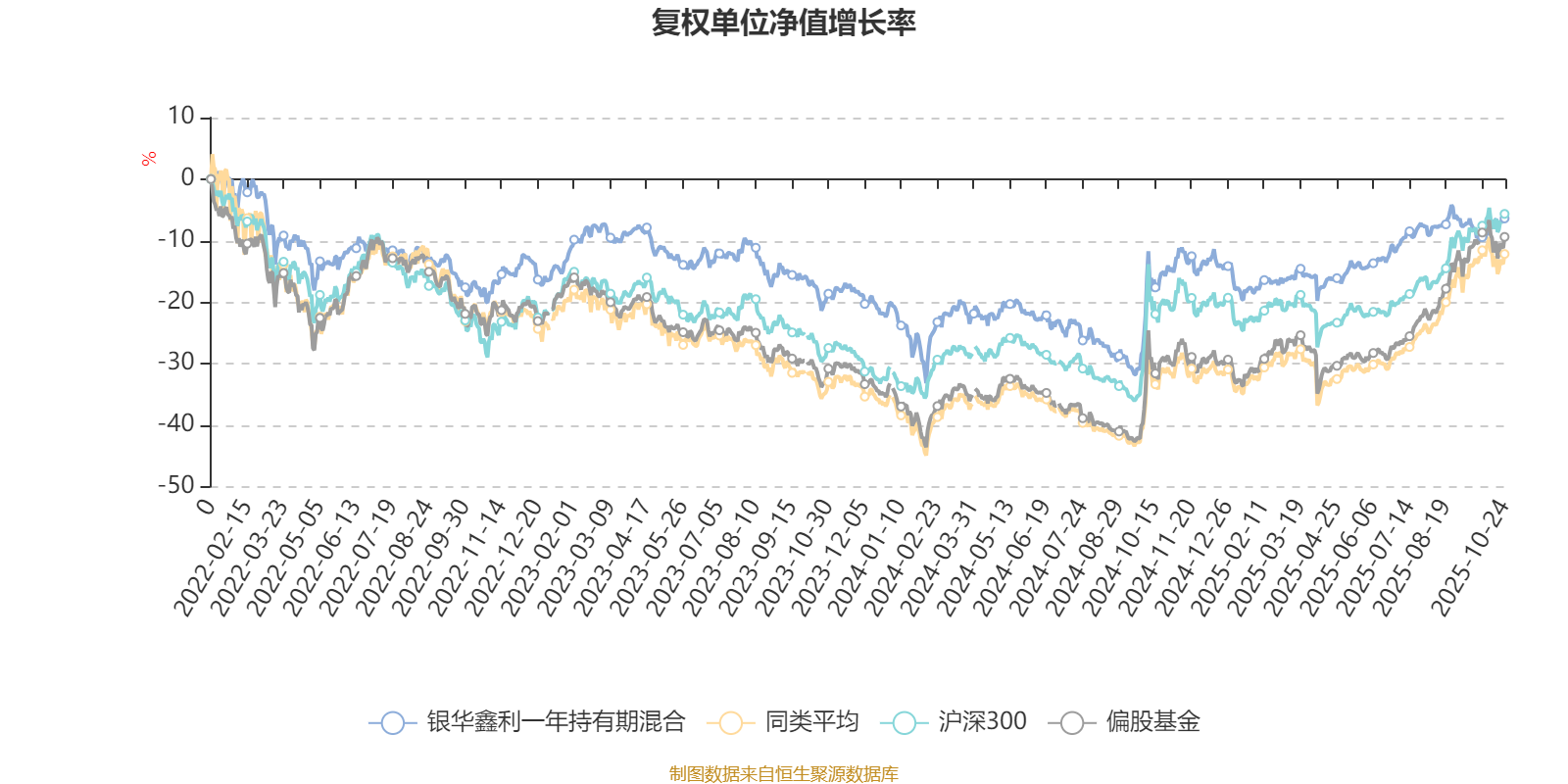 截至10月24日,银华鑫利一年持有期混合近三个月复权单位净值增长率为0.84%,位于同类可比基金251/265;近半年复权单位净值增长率为11.38%,位于同类可比基金246/265;近一年复权单位净值增长率为11.11%,位于同类可比基金239/265;近三年复权单位净值增长率为15.15%,位于同类可比基金139/253。