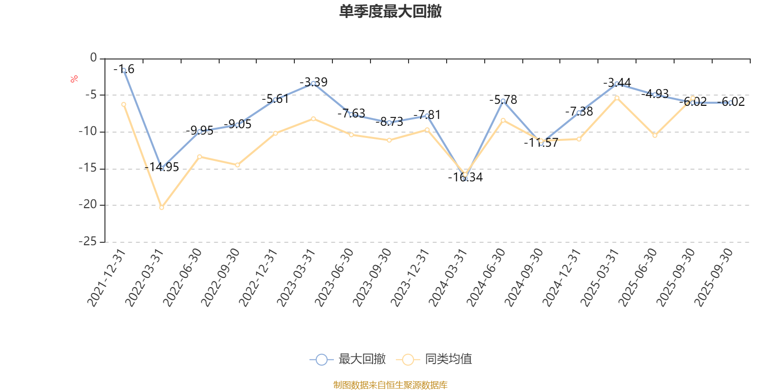 截至10月24日,基金近三年最大回撤为27.93%,同类可比基金排名57/252。单季度最大回撤出现在2024年一季度,为16.34%。