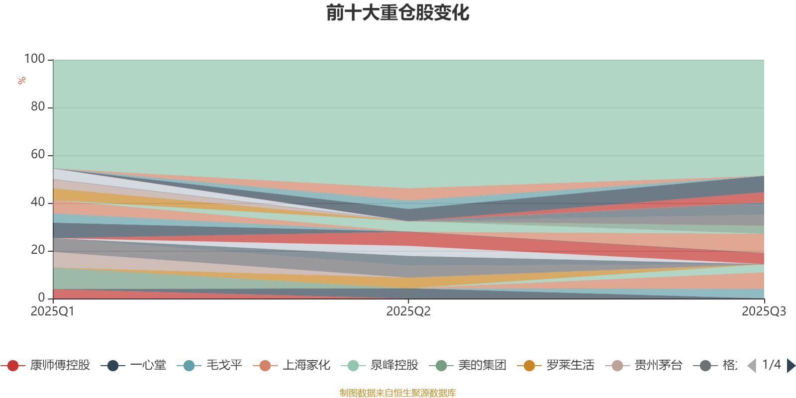 截至2025年三季度末,基金十大重仓股分别是泸州老窖、上海家化、山西汾酒、越秀地产、阿里巴巴-W、农夫山泉、山东黄金、毛戈平、上美股份、泉峰控股。
