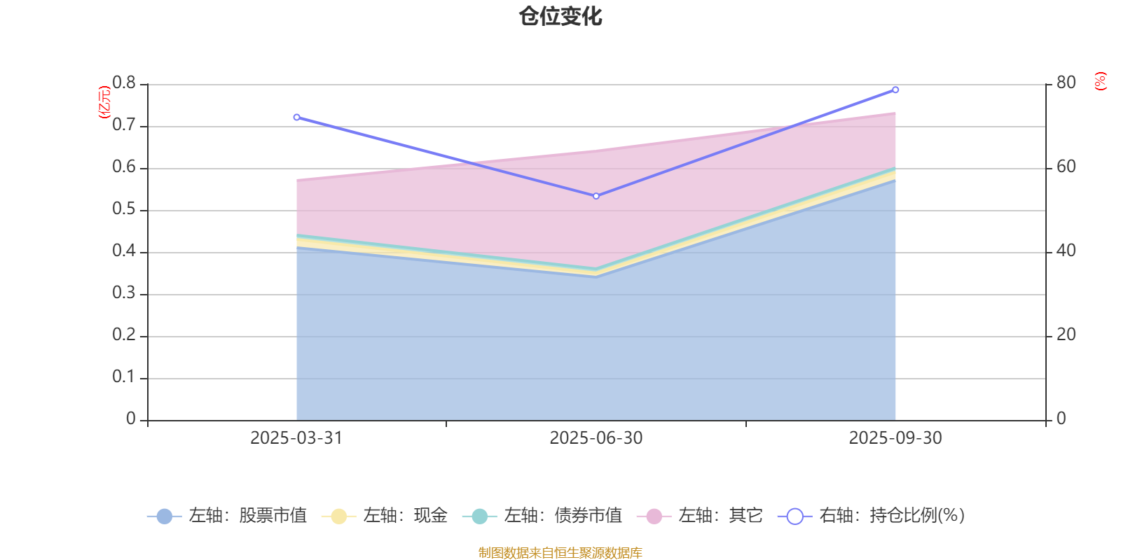 据定期报告数据统计,成立以来平均股票仓位为68.01%,同类平均为87.17%。2025年三季度末基金达到78.63%的最高仓位,2025年上半年末最低,为53.32%。