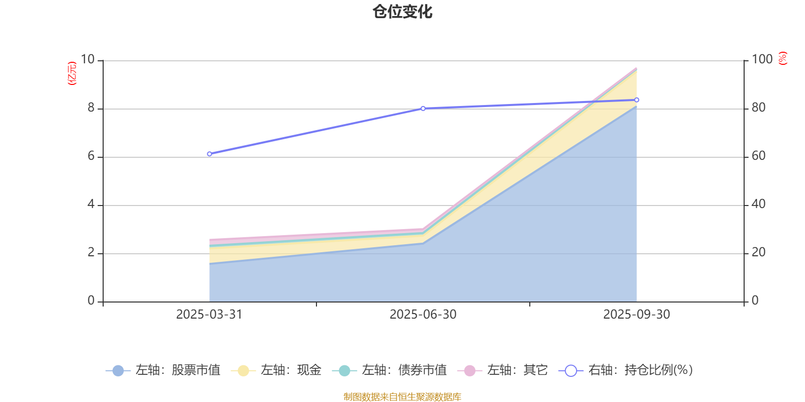 据定期报告数据统计,成立以来平均股票仓位为74.93%,同类平均为85.51%。2025年三季度末基金达到83.59%的最高仓位,2025年一季度末最低,为61.19%。