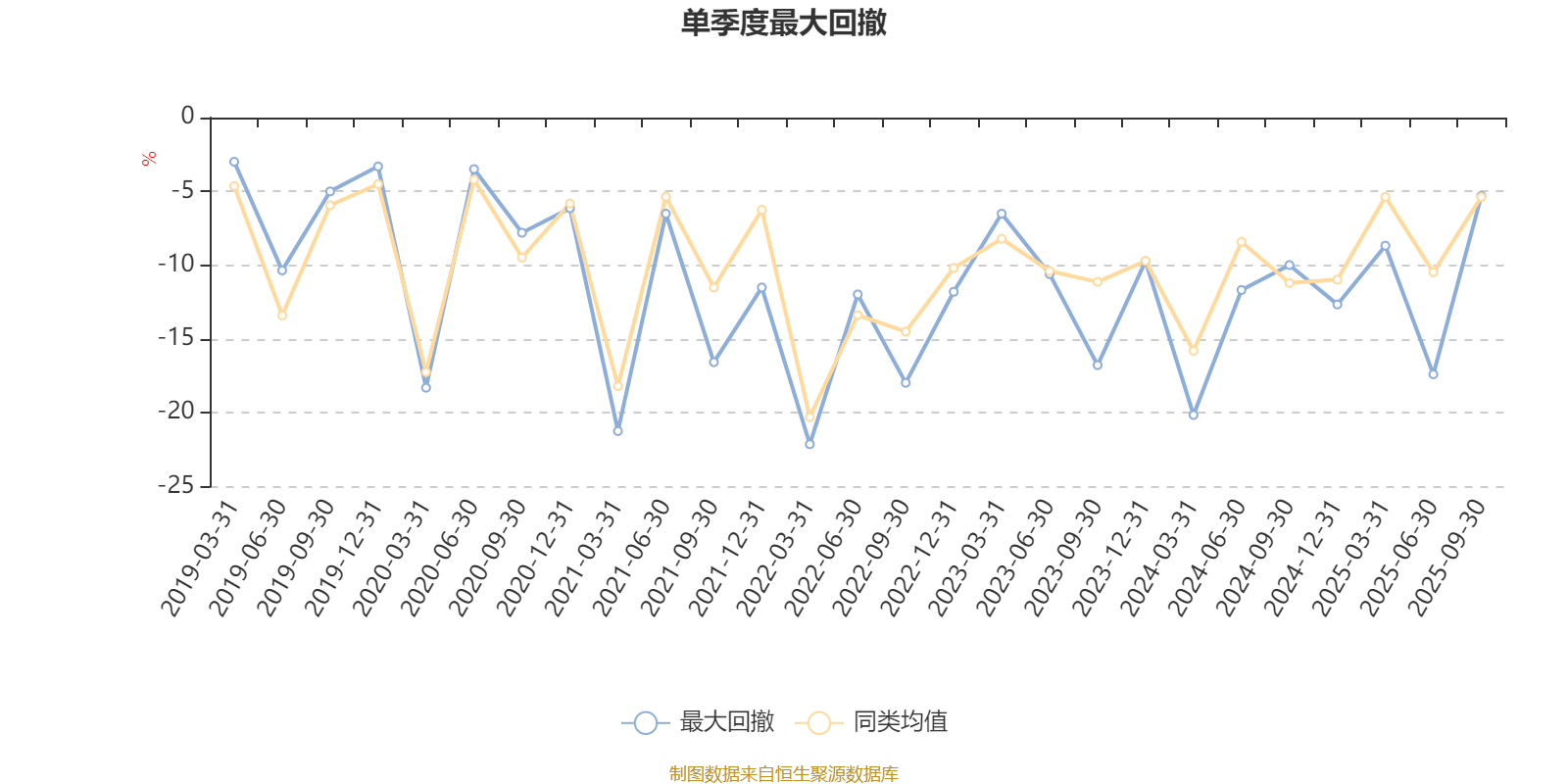 通过所选区间该基金净值增长率分位图,可以观察该基金与同类基金业绩比较情况。图为坐标原点到区间内某时点的净值增长率在同类基金中的分位数。