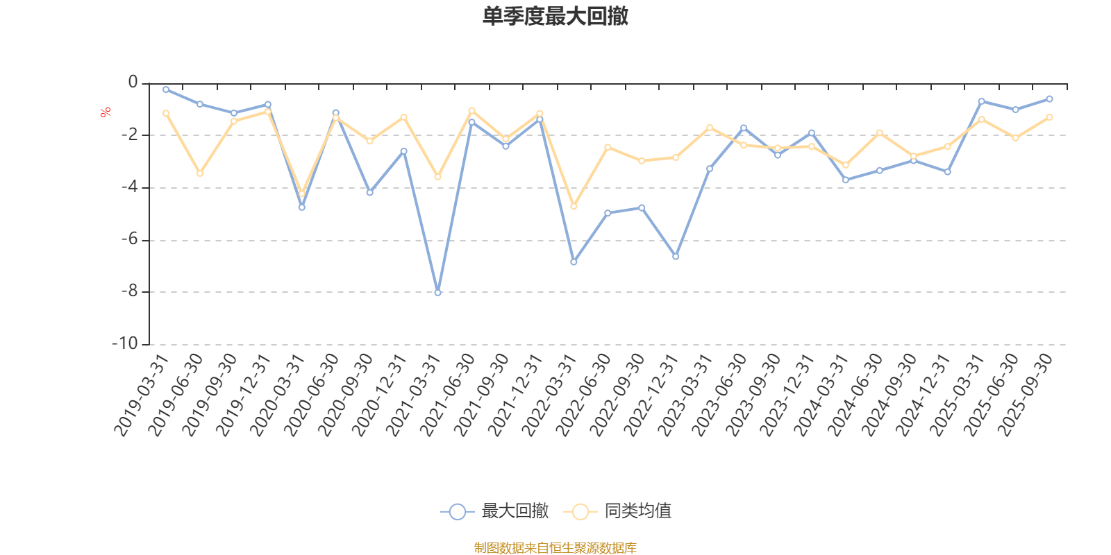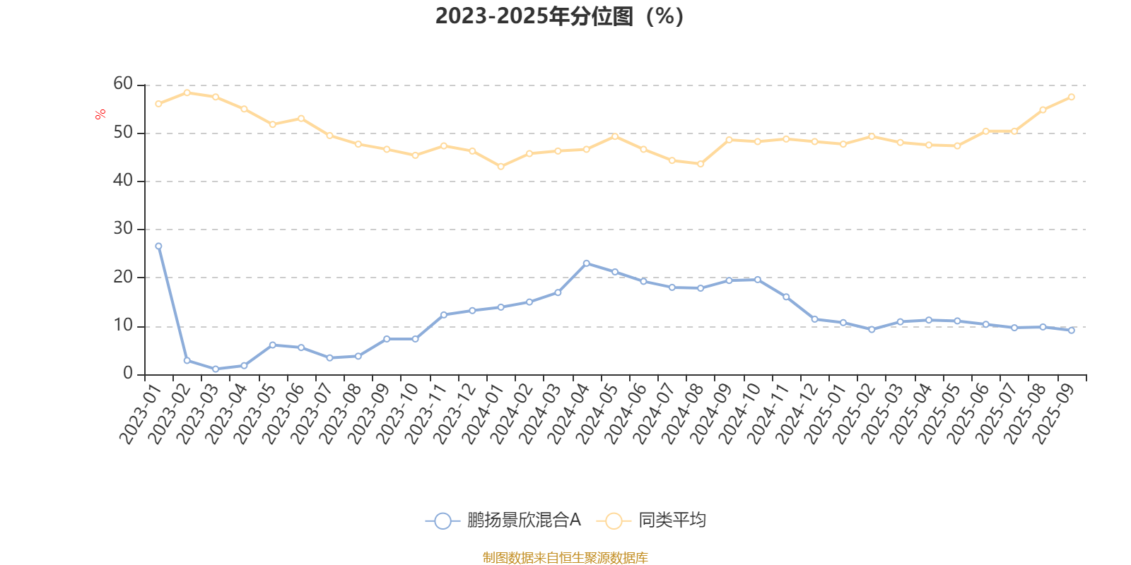 通过所选区间该基金净值增长率分位图,可以观察该基金与同类基金业绩比较情况。图为坐标原点到区间内某时点的净值增长率在同类基金中的分位数。