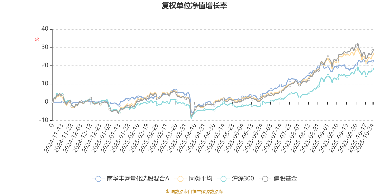 截至10月24日,南华丰睿量化选股混合A近三个月复权单位净值增长率为8.38%,位于同类可比基金470/689;近半年复权单位净值增长率为22.13%,位于同类可比基金412/688。