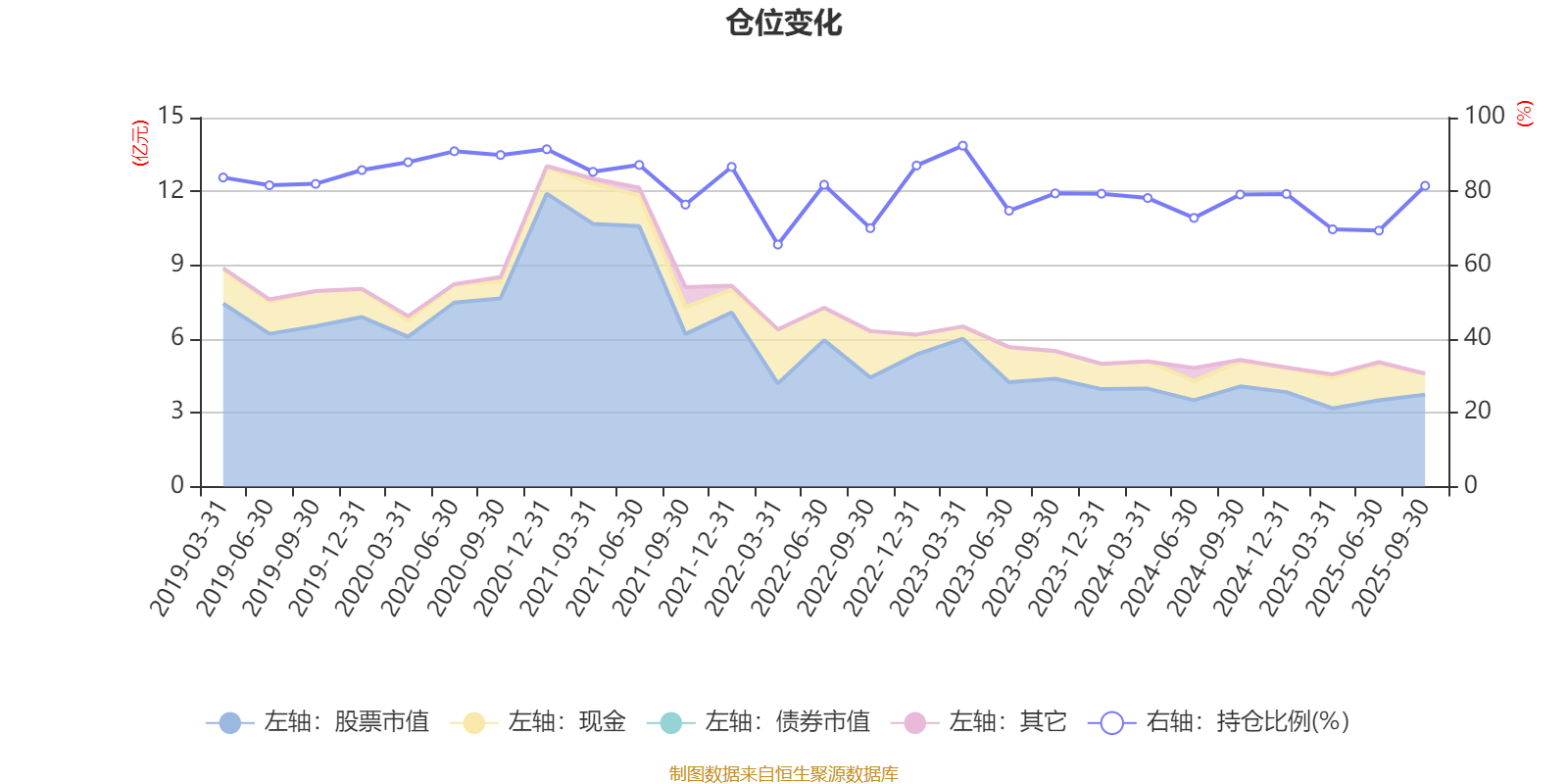 据定期报告数据统计,近三年平均股票仓位为78.59%,同类平均为87.17%。2023年一季度末基金达到92.39%的最高仓位,2022年一季度末最低,为65.59%。