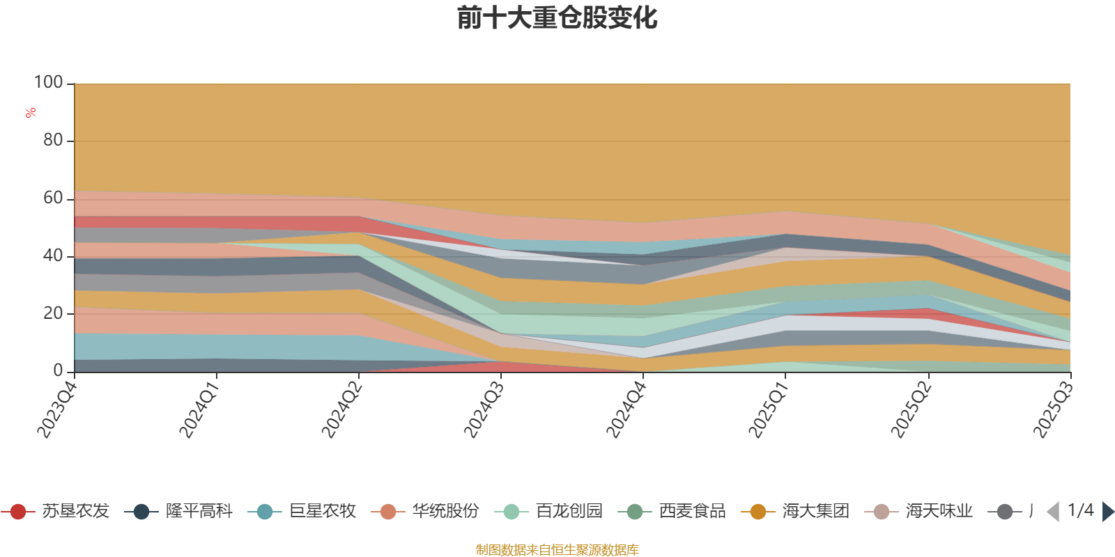 截至2025年三季度末,基金十大重仓股分别是温氏股份、牧原股份、海大集团、安琪酵母、云天化、立华股份、舍得酒业、中宠股份、史丹利、西麦食品。