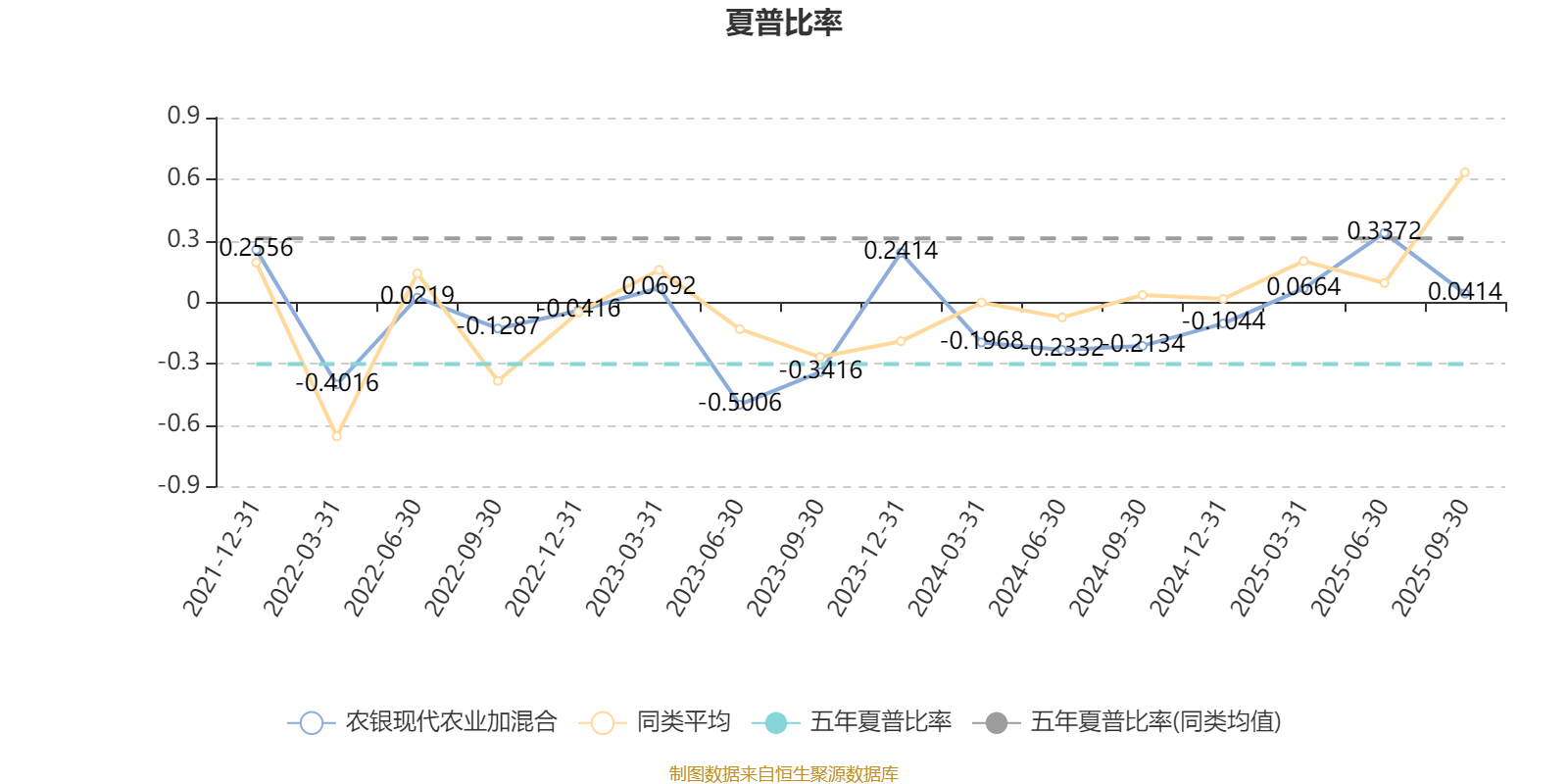 截至9月30日,基金近三年夏普比率为-0.3101,位于同类可比基金1264/1285。