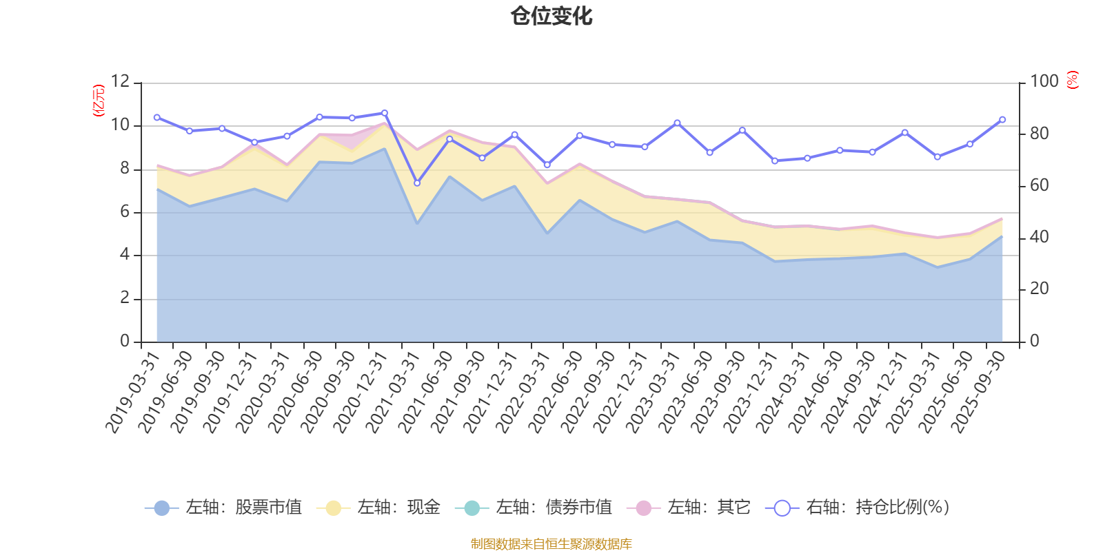 据定期报告数据统计,近三年平均股票仓位为76.38%,同类平均为85.51%。2020年末基金达到88.32%的最高仓位,2021年一季度末最低,为61.28%。