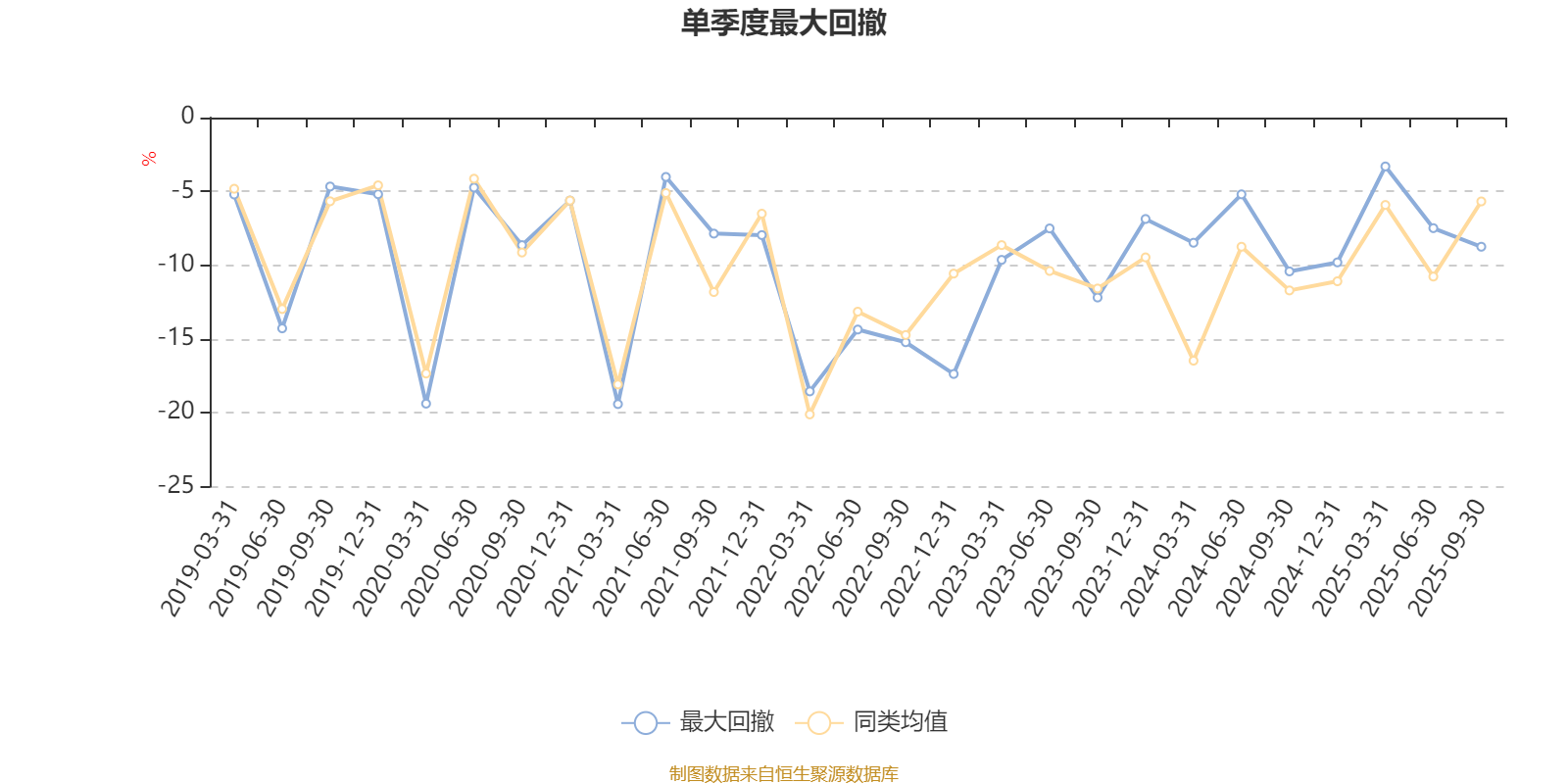 通过所选区间该基金净值增长率分位图,可以观察该基金与同类基金业绩比较情况。图为坐标原点到区间内某时点的净值增长率在同类基金中的分位数。