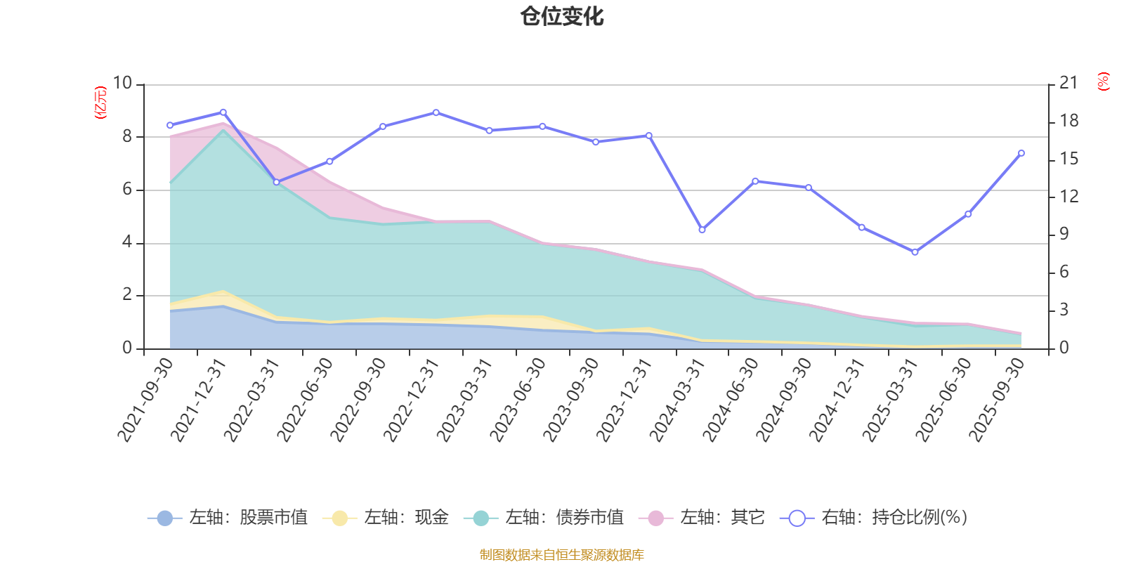 据定期报告数据统计,近三年平均股票仓位为13.85%,同类平均为19.03%。2021年末基金达到18.78%的最高仓位,2025年一季度末最低,为7.68%。
