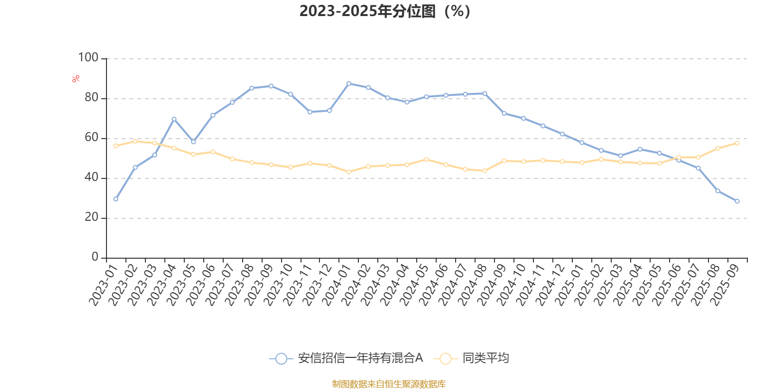 通过所选区间该基金净值增长率分位图,可以观察该基金与同类基金业绩比较情况。图为坐标原点到区间内某时点的净值增长率在同类基金中的分位数。