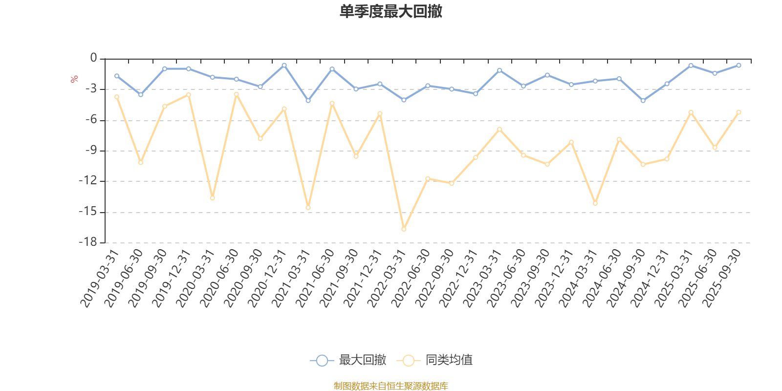 截至10月24日,基金近三年最大回撤为4.89%,同类可比基金排名78/1283。单季度最大回撤出现在2021年一季度,为4.1%。