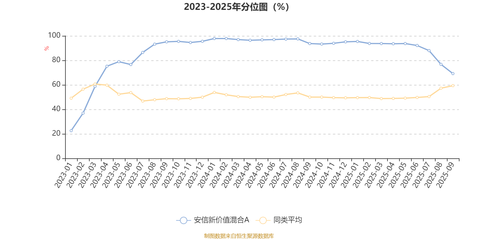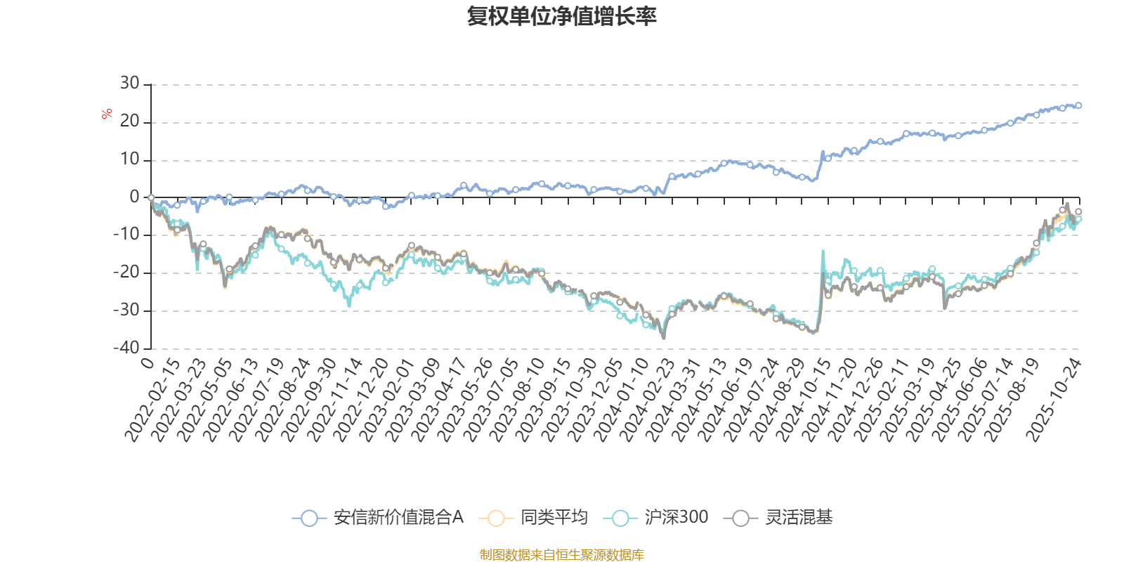 截至10月24日,安信新价值混合A近三个月复权单位净值增长率为2.72%,位于同类可比基金1021/1287;近半年复权单位净值增长率为6.95%,位于同类可比基金1074/1287;近一年复权单位净值增长率为11.91%,位于同类可比基金898/1287;近三年复权单位净值增长率为25.24%,位于同类可比基金391/1286。