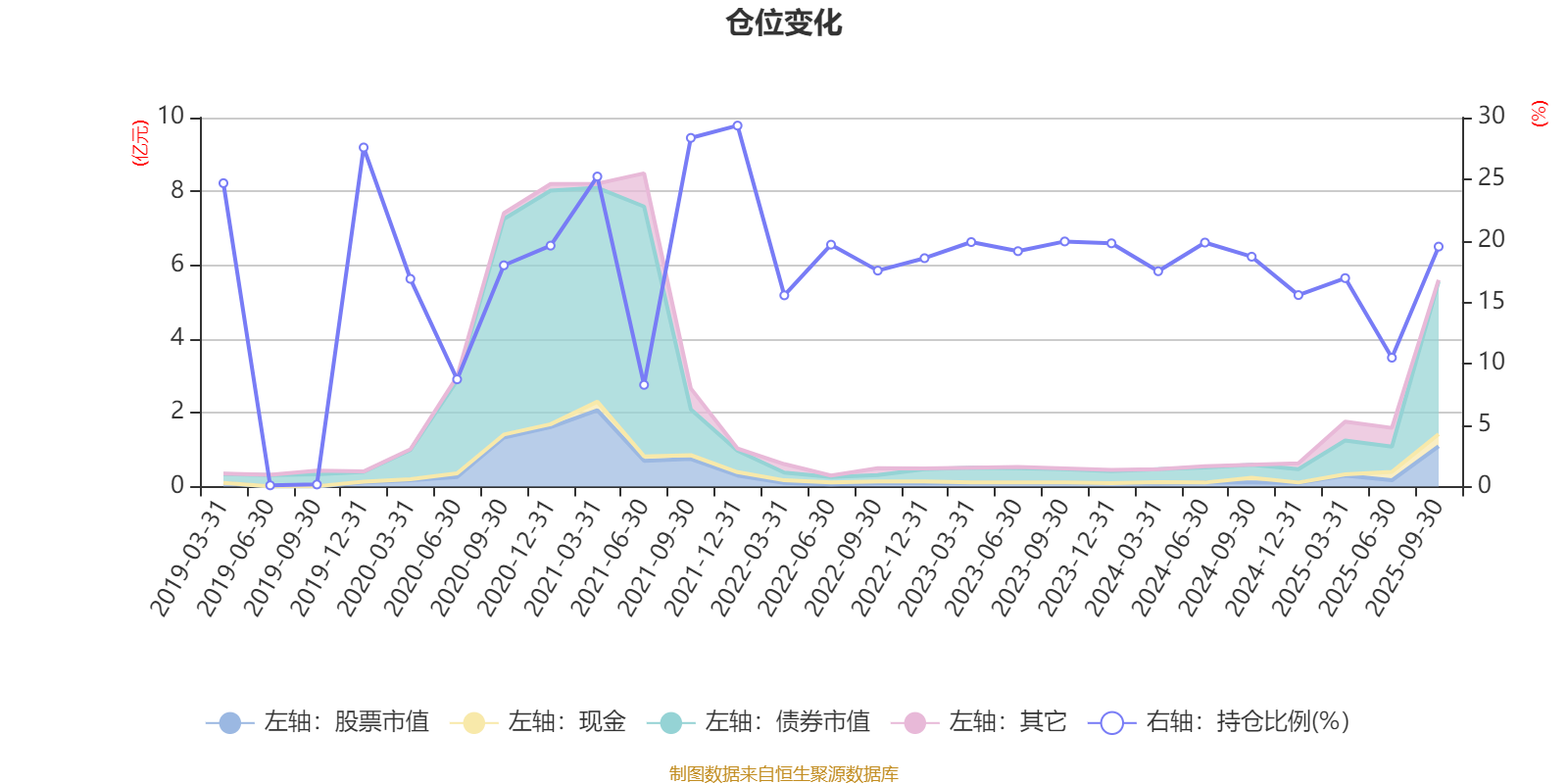 据定期报告数据统计,近三年平均股票仓位为17.99%,同类平均为72.16%。2021年末基金达到29.35%的最高仓位,2019年上半年末最低,为0.1%。