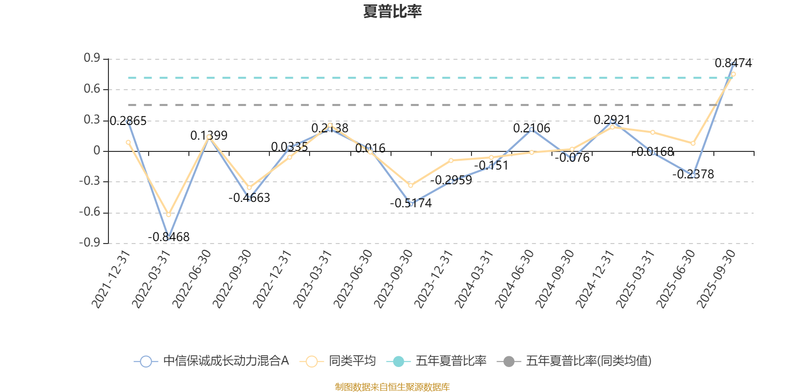截至9月30日,基金近三年夏普比率为0.8434,位于同类可比基金61/159。