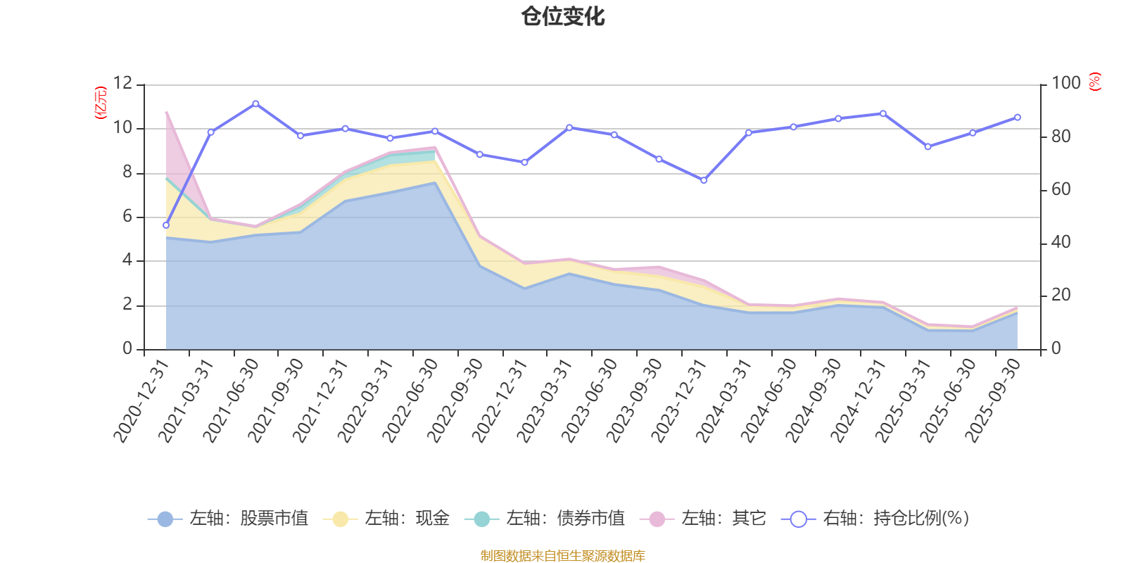 据定期报告数据统计,近三年平均股票仓位为79.9%,同类平均为86.74%。2021年上半年末基金达到92.74%的最高仓位,2020年末最低,为46.89%。