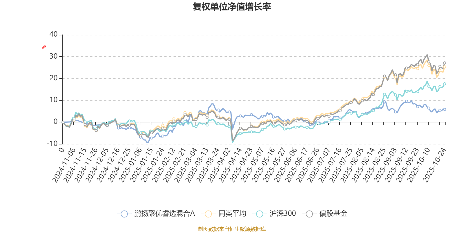 截至10月24日,鹏扬聚优睿选混合A近三个月复权单位净值增长率为-0.10%,位于同类可比基金652/689;近半年复权单位净值增长率为2.64%,位于同类可比基金677/688。