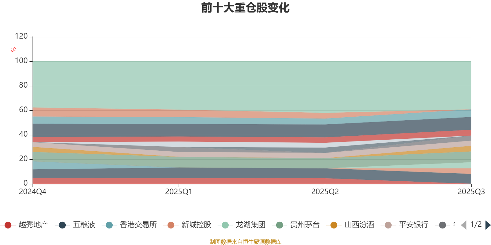 该基金持股集中度较高,且持股标的较为稳定。截至2025年三季度末,基金十大重仓股分别是腾讯控股、贵州茅台、五粮液、美团-W、龙湖集团、川仪股份、山西汾酒、新城控股、平安银行、华润置地。