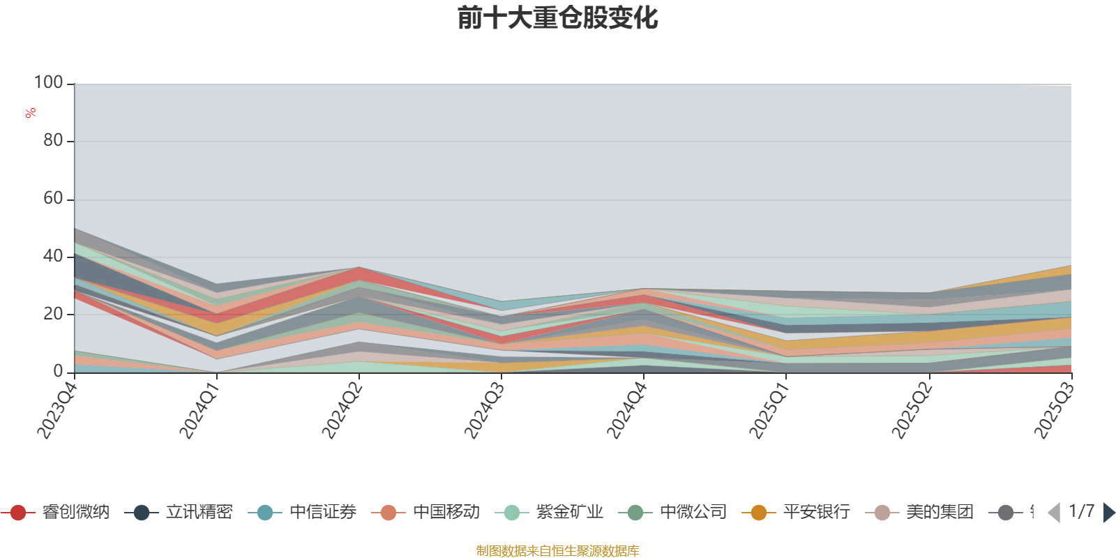 截至2025年三季度末,基金十大重仓股分别是中芯国际、赛轮轮胎、阿里巴巴-W、信达生物、腾讯控股、科伦博泰生物-B、瑞芯微、新华保险、紫金矿业、睿创微纳。