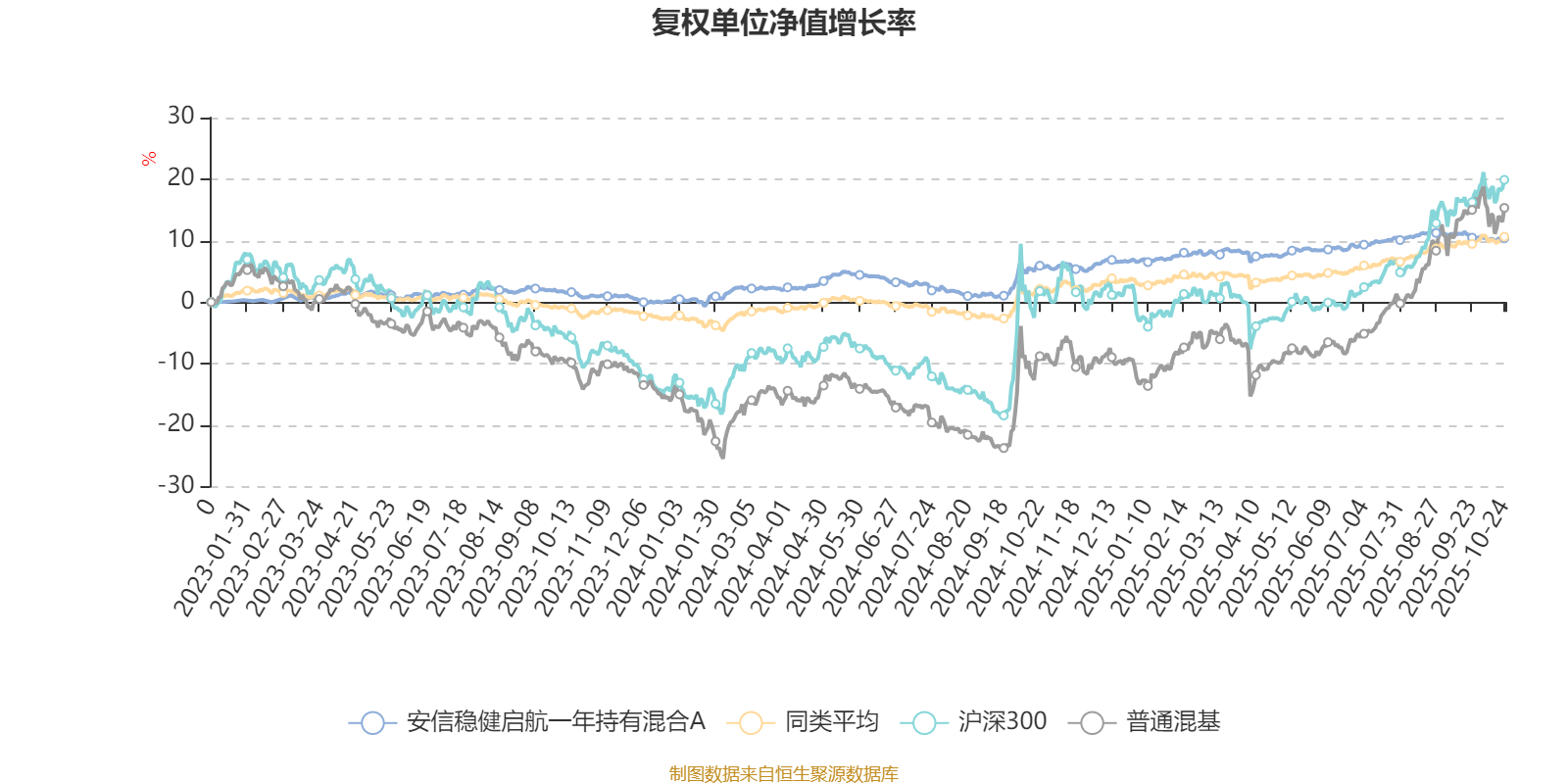 截至10月24日,安信稳健启航一年持有混合A近三个月复权单位净值增长率为0.29%,位于同类可比基金562/629;近半年复权单位净值增长率为2.58%,位于同类可比基金518/629;近一年复权单位净值增长率为4.48%,位于同类可比基金494/623。