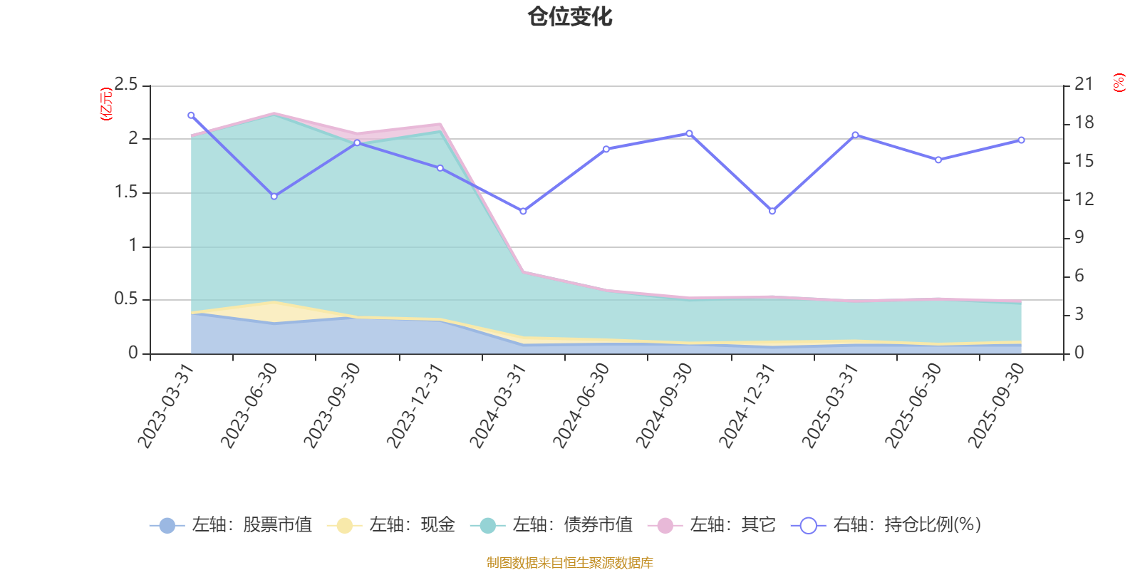 据定期报告数据统计,成立以来平均股票仓位为15.15%,同类平均为19.03%。2023年一季度末基金达到18.67%的最高仓位,2024年一季度末最低,为11.16%。
