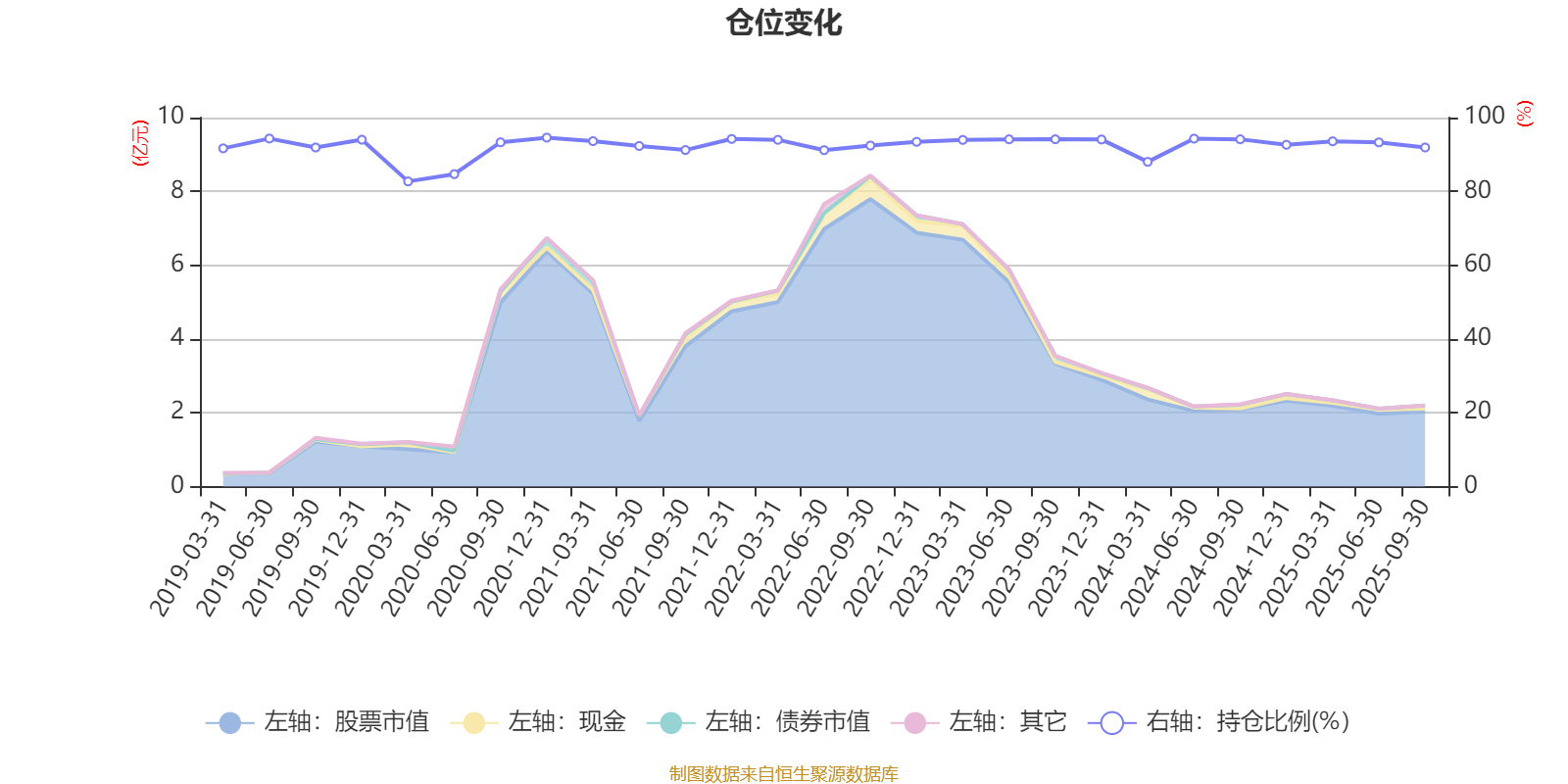 据定期报告数据统计,近三年平均股票仓位为93.13%,同类平均为72.16%。2020年末基金达到94.57%的最高仓位,2020年一季度末最低,为82.7%。