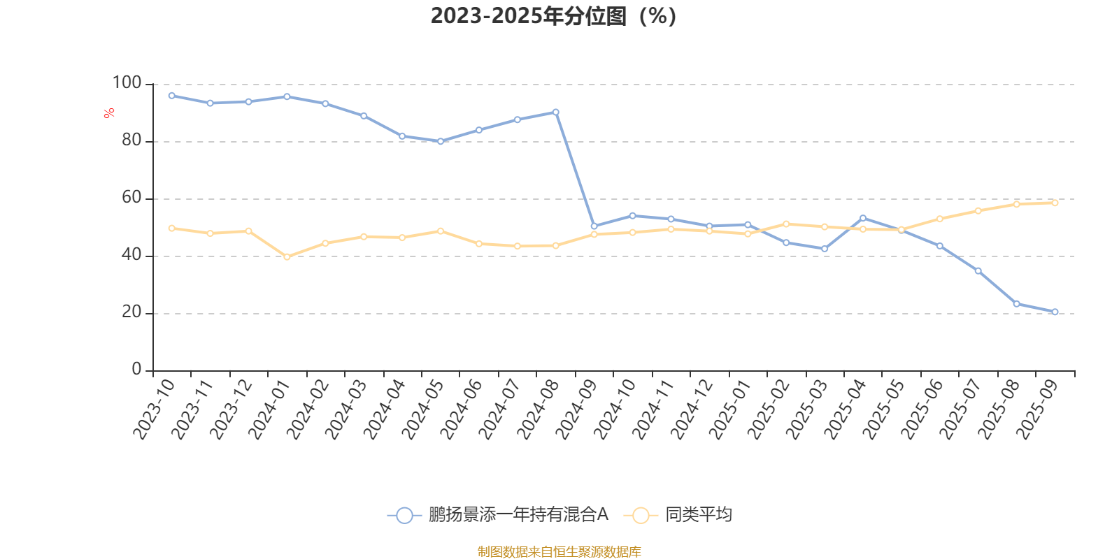 通过所选区间该基金净值增长率分位图,可以观察该基金与同类基金业绩比较情况。图为坐标原点到区间内某时点的净值增长率在同类基金中的分位数。