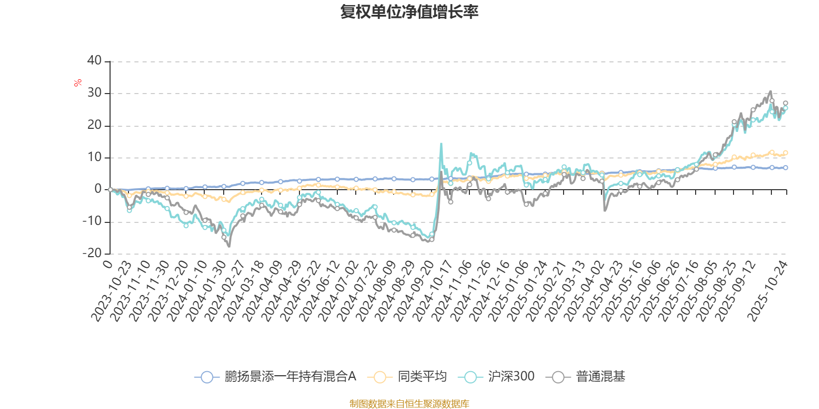 截至10月24日,鹏扬景添一年持有混合A近三个月复权单位净值增长率为0.30%,位于同类可比基金562/629;近半年复权单位净值增长率为1.44%,位于同类可比基金588/629;近一年复权单位净值增长率为3.31%,位于同类可比基金553/623。