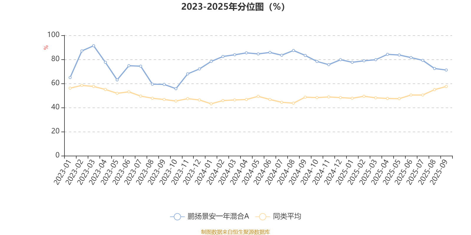 通过所选区间该基金净值增长率分位图,可以观察该基金与同类基金业绩比较情况。图为坐标原点到区间内某时点的净值增长率在同类基金中的分位数。