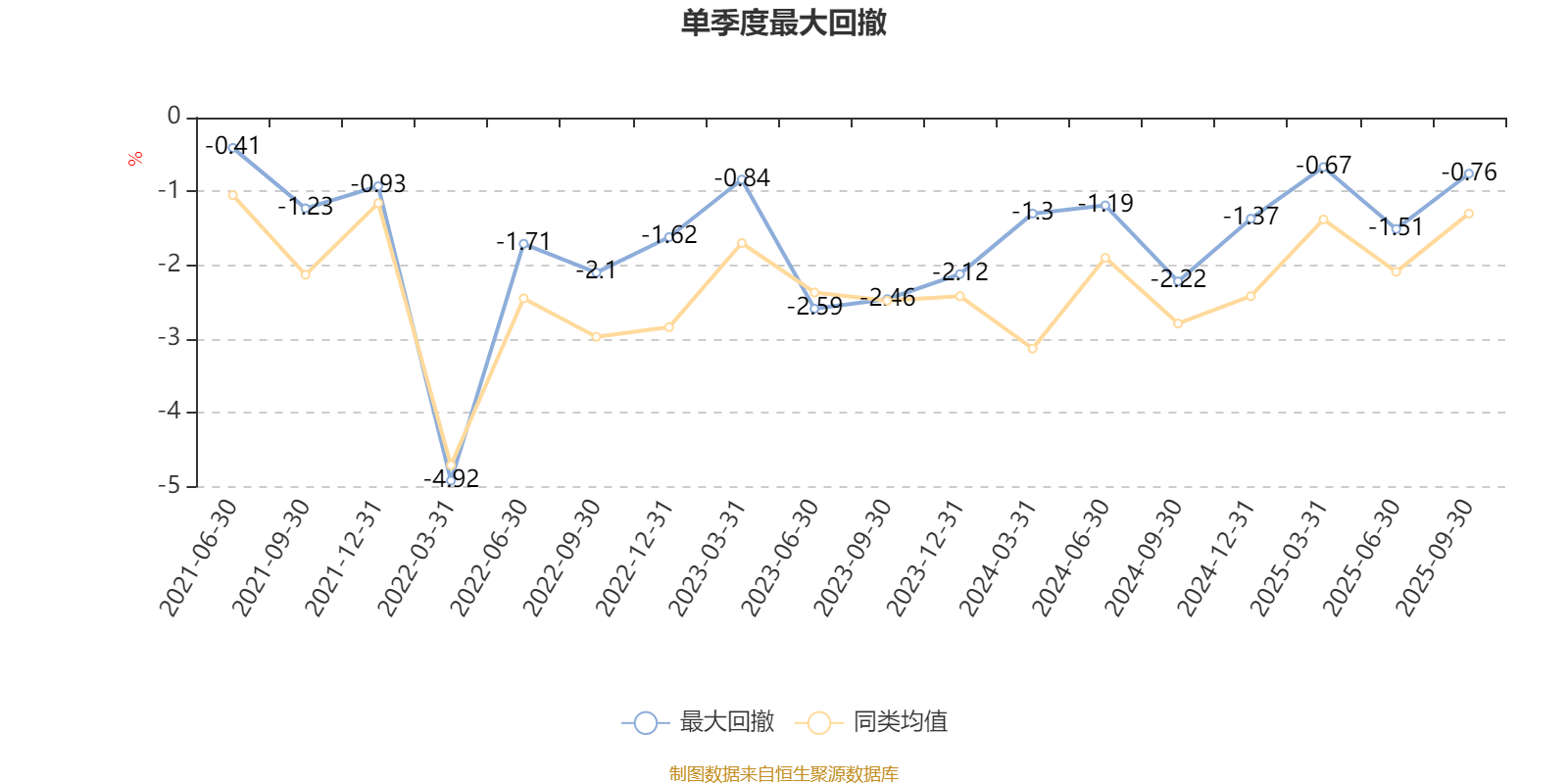截至10月24日,基金近三年最大回撤为4.75%,同类可比基金排名177/552。单季度最大回撤出现在2022年一季度,为4.92%。