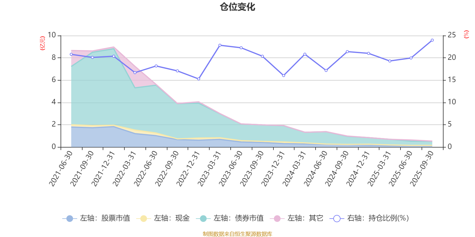 据定期报告数据统计,近三年平均股票仓位为20.04%,同类平均为19.03%。2025年三季度末基金达到23.97%的最高仓位,2022年末最低,为15.28%。