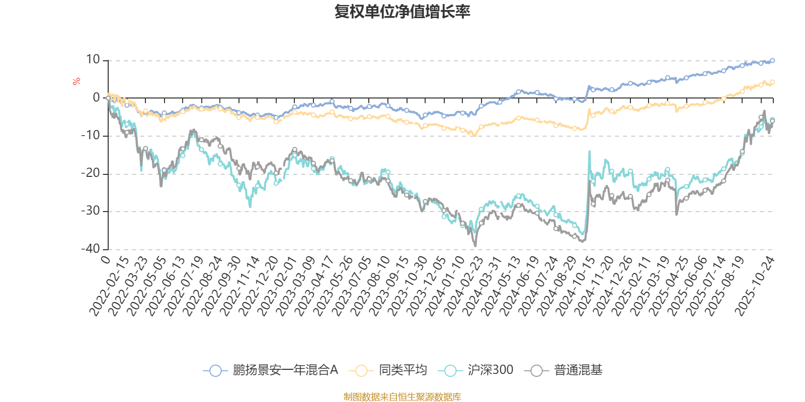 截至10月24日,鹏扬景安一年混合A近三个月复权单位净值增长率为1.44%,位于同类可比基金407/629;近半年复权单位净值增长率为4.32%,位于同类可比基金374/629;近一年复权单位净值增长率为7.48%,位于同类可比基金271/623;近三年复权单位净值增长率为14.85%,位于同类可比基金153/556。