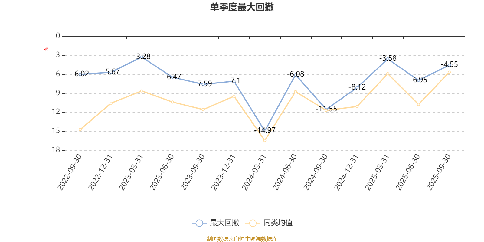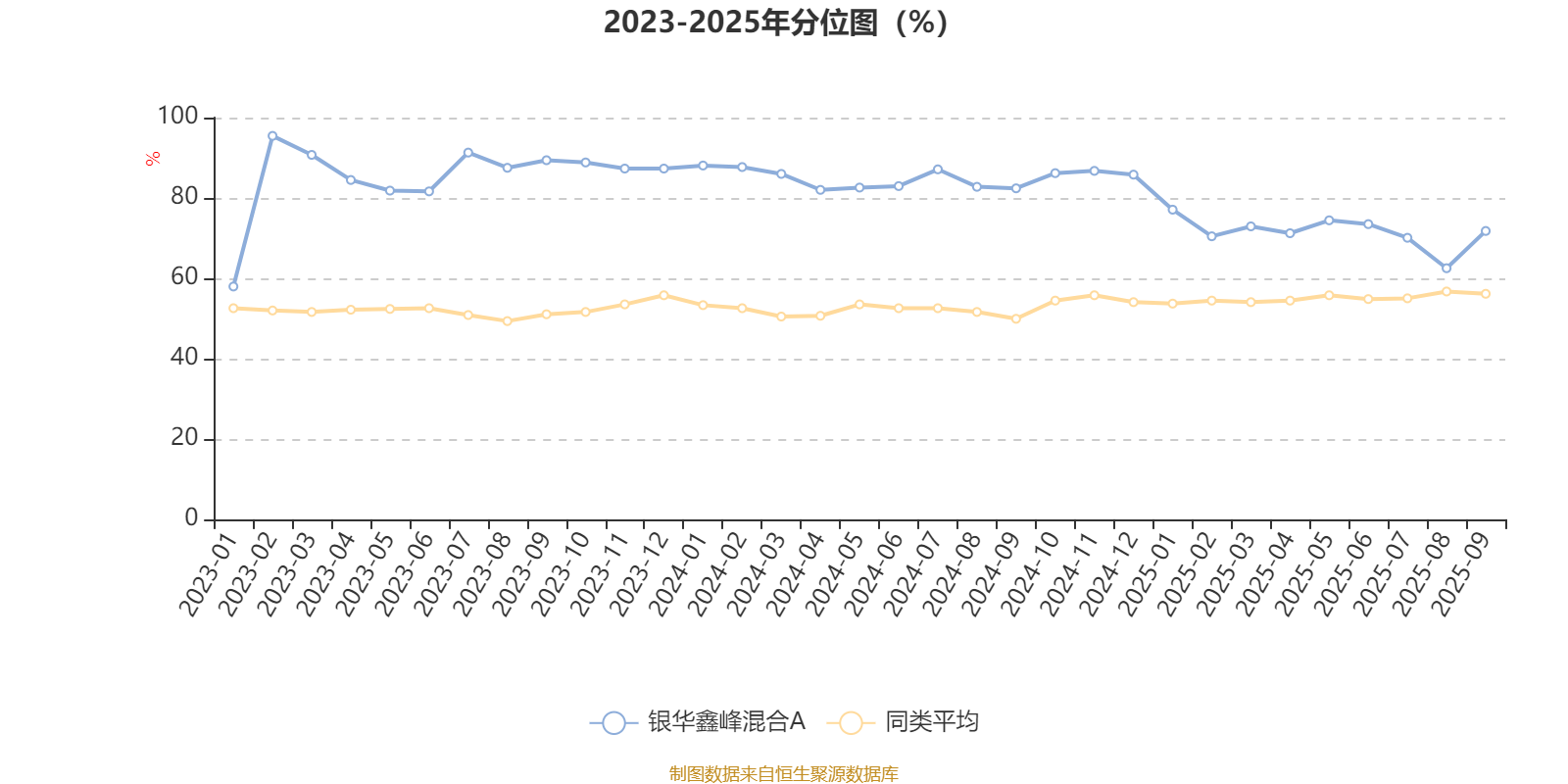 通过所选区间该基金净值增长率分位图,可以观察该基金与同类基金业绩比较情况。图为坐标原点到区间内某时点的净值增长率在同类基金中的分位数。
