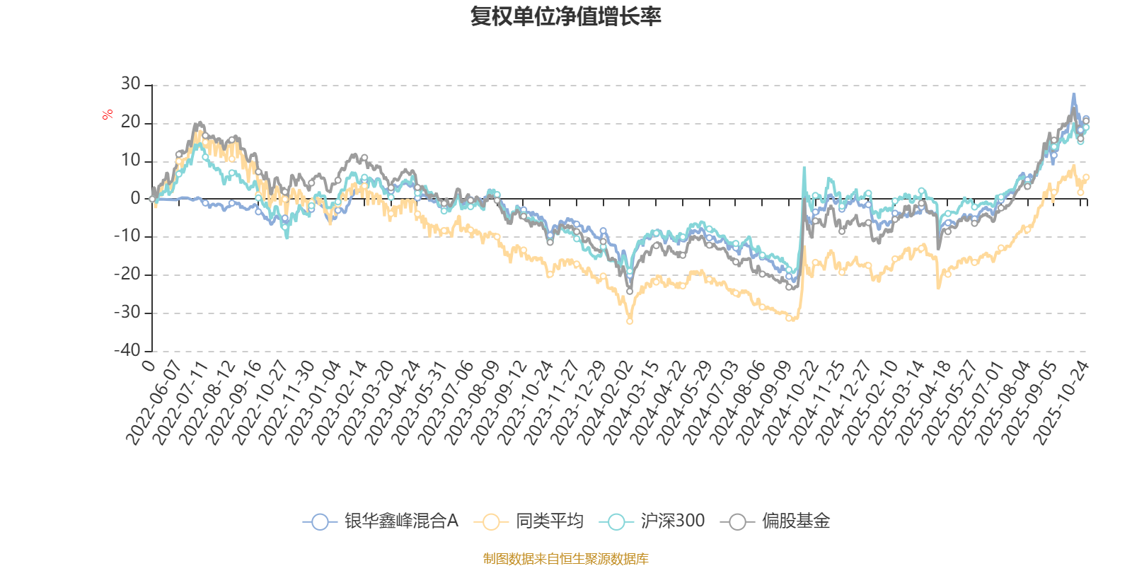 截至10月24日,银华鑫峰混合A近三个月复权单位净值增长率为14.15%,位于同类可比基金301/621;近半年复权单位净值增长率为28.89%,位于同类可比基金282/618;近一年复权单位净值增长率为26.05%,位于同类可比基金340/611;近三年复权单位净值增长率为28.48%,位于同类可比基金154/518。