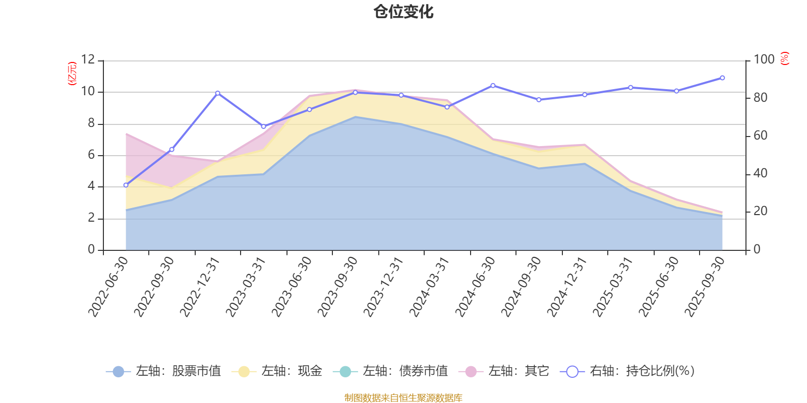 据定期报告数据统计,近三年平均股票仓位为80.91%,同类平均为85.51%。2025年三季度末基金达到90.84%的最高仓位,2022年上半年末最低,为34.29%。