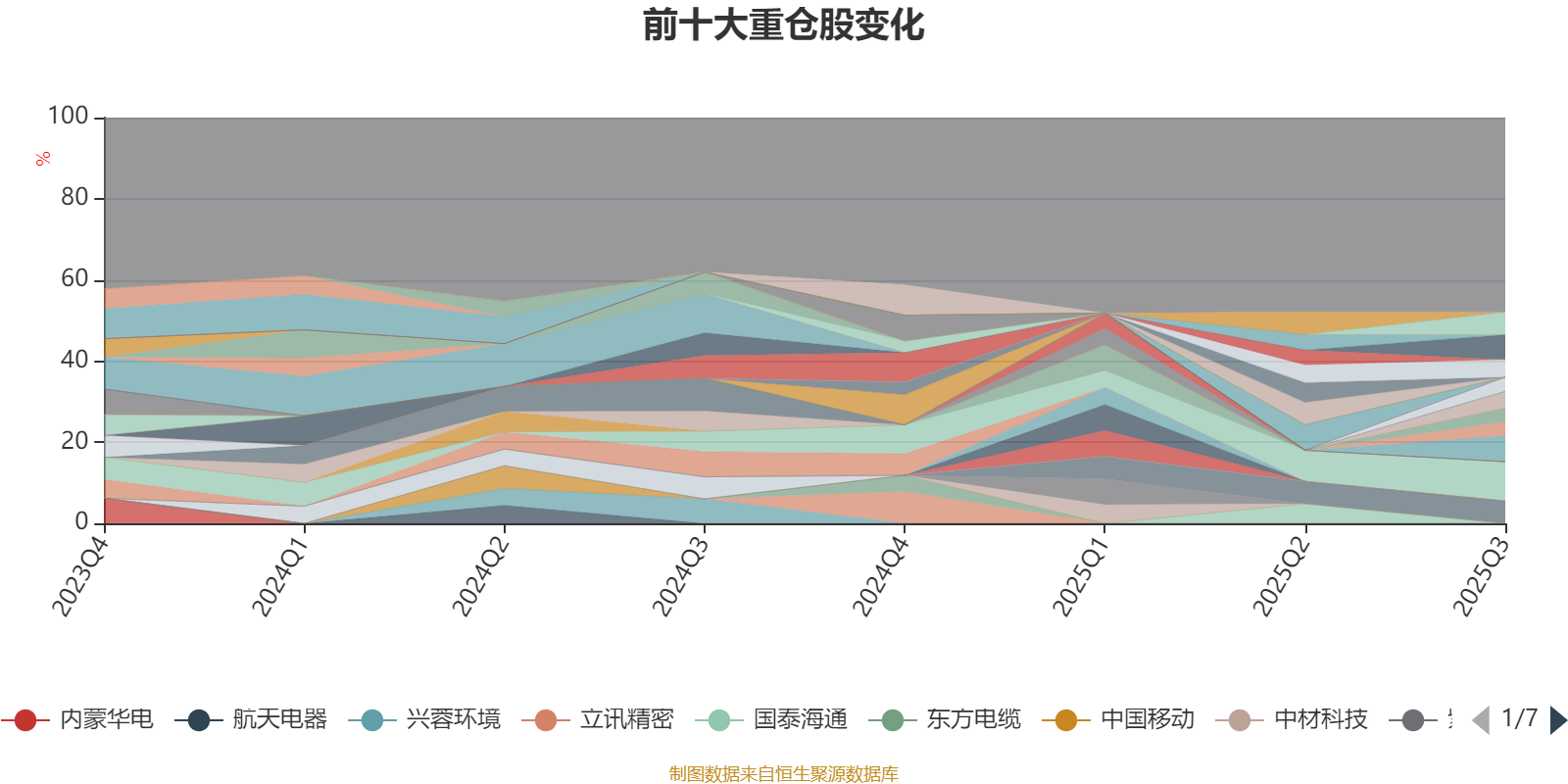 该基金持股集中度较高。截至2025年三季度末,基金十大重仓股分别是宁德时代、汇川技术、亿纬锂能、三棵树、华通线缆、科达制造、特锐德、徐工机械、潮宏基、厦门钨业。